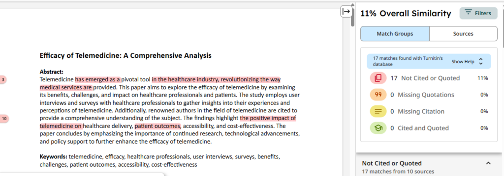 Figure 1: Screenshot of Paperpal’s plagiarism check report