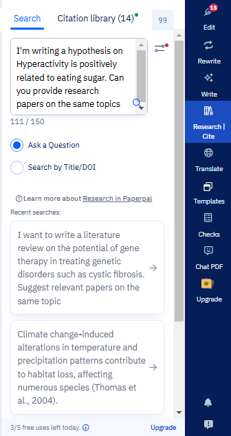 Paperpalの「執筆アシスト」(Write)機能を使えば、あなたの研究質問やデータに基づいて仮説を作成する手助けができます。