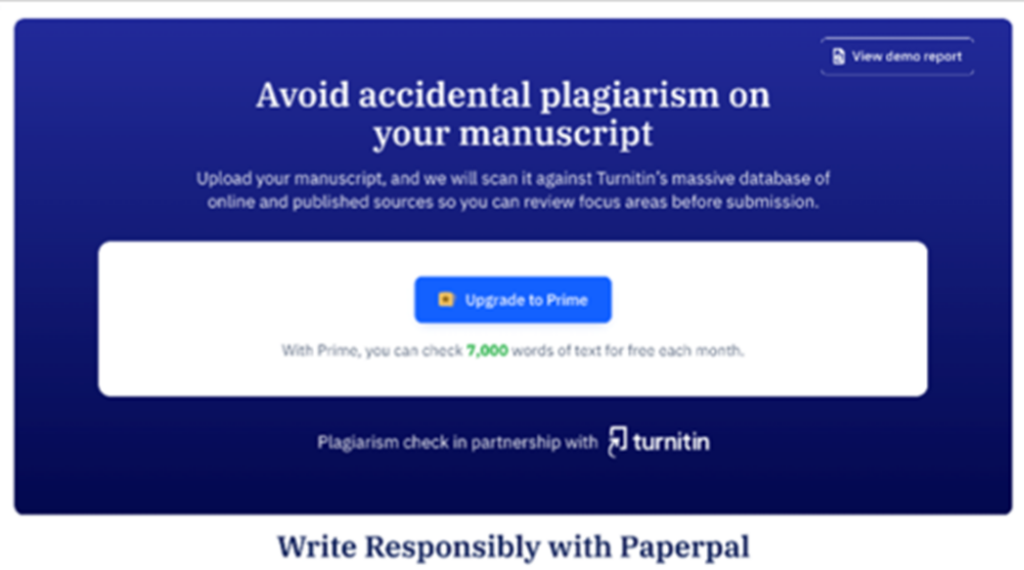 「オンライン剽窃チェック機能」の追加により、Paperpalは学術ライティングのためのエンドツーエンドのソリューションを著者に提供します。著者は、学術的な文章を990億のウェブページからなる広範なデータベースと照らし合わせてスキャンし、類似度スコア、色分けされた結果、出典との横並び比較を含む剽窃レポートを即座に受け取ることができます。Paperpalの有料版であるプライムのサブスクリプションでは、著者は毎月7,000単語まで剽窃チェックを行うことができます。