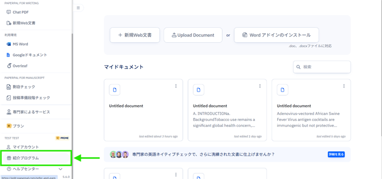 2: 左手のメインメニュー下方にある「紹介プログラム」をクリック
