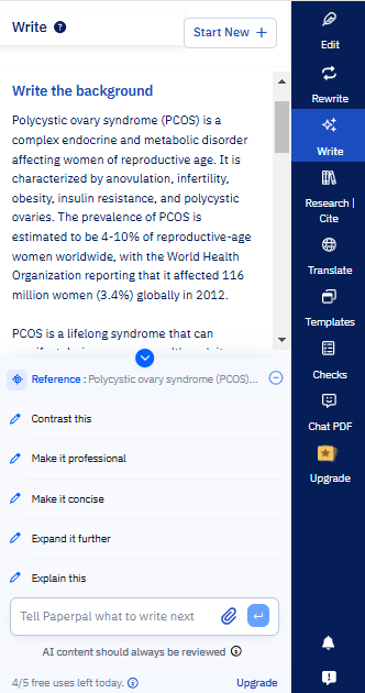PaperpalのAI学術ライティングツールは、研究背景の執筆プロセスをより効率的にサポートします。文献調査から正確な引用作成、アウトライン作成、実際の執筆開始まで、一連の作業を支援します。より個別化された結果を得るためには、Paperpalに大まかなメモをアップロードすることも可能です。これらのメモを出発点として、Paperpalが執筆の強固な基盤構築を手助けします。